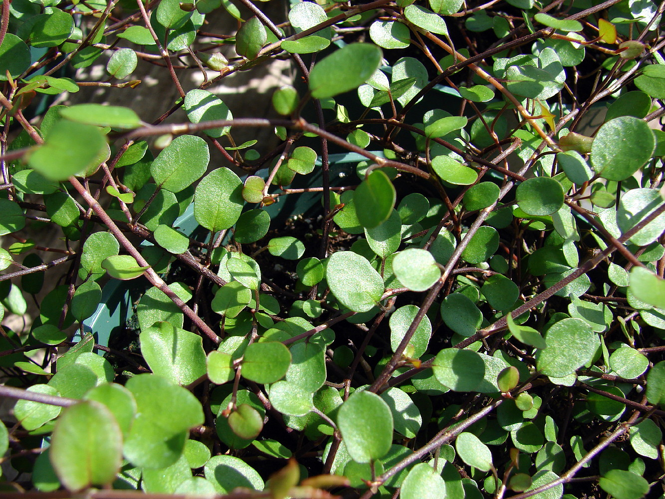 Muehlenbeckia complexaAngel vine is a sprawling shrub with long wiry stems and small round leaves.
